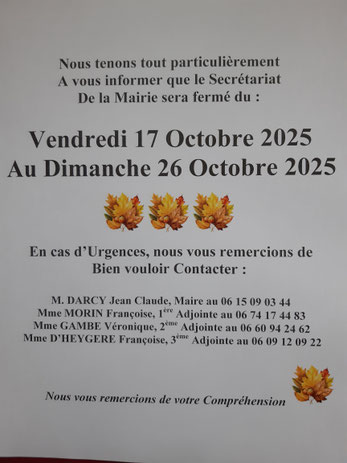 En cas d'urgence vous pouvez joindre le Maire et les Adjointes.